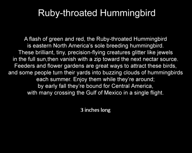 For detailed information click on the link below: allaboutbirds.org/guide/Ruby-throated_Hummingbird/id