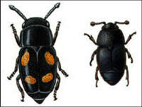 As they feed on or tunnel through the spore mats, nitidulid beetles
