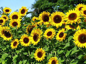 are not sunflowers sown in orderly rows but clumps and individuals "planted"